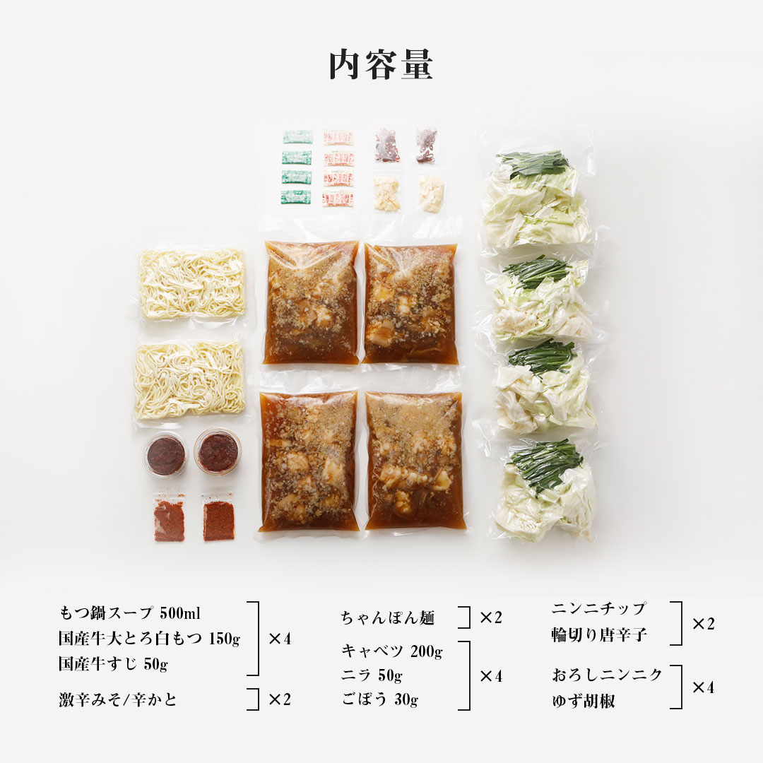 (もつ鍋スープ500ml・牛もつ150g・牛すじ50g)×4