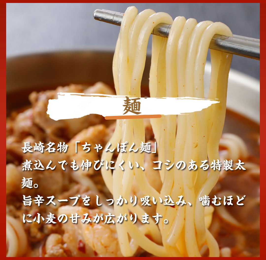 宮崎名物「辛麺」の刺激的なスープに、当店自慢の【ちゃんぽん麺】を合わせた“がばい流ハイブリッド麺”。