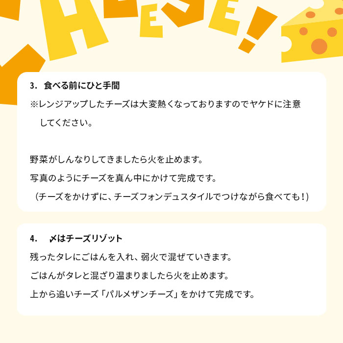 チーズソースには「チェダーチーズ」「エメンタールチーズ」「ゴーダチーズ」の3種類のチーズをブレンド。