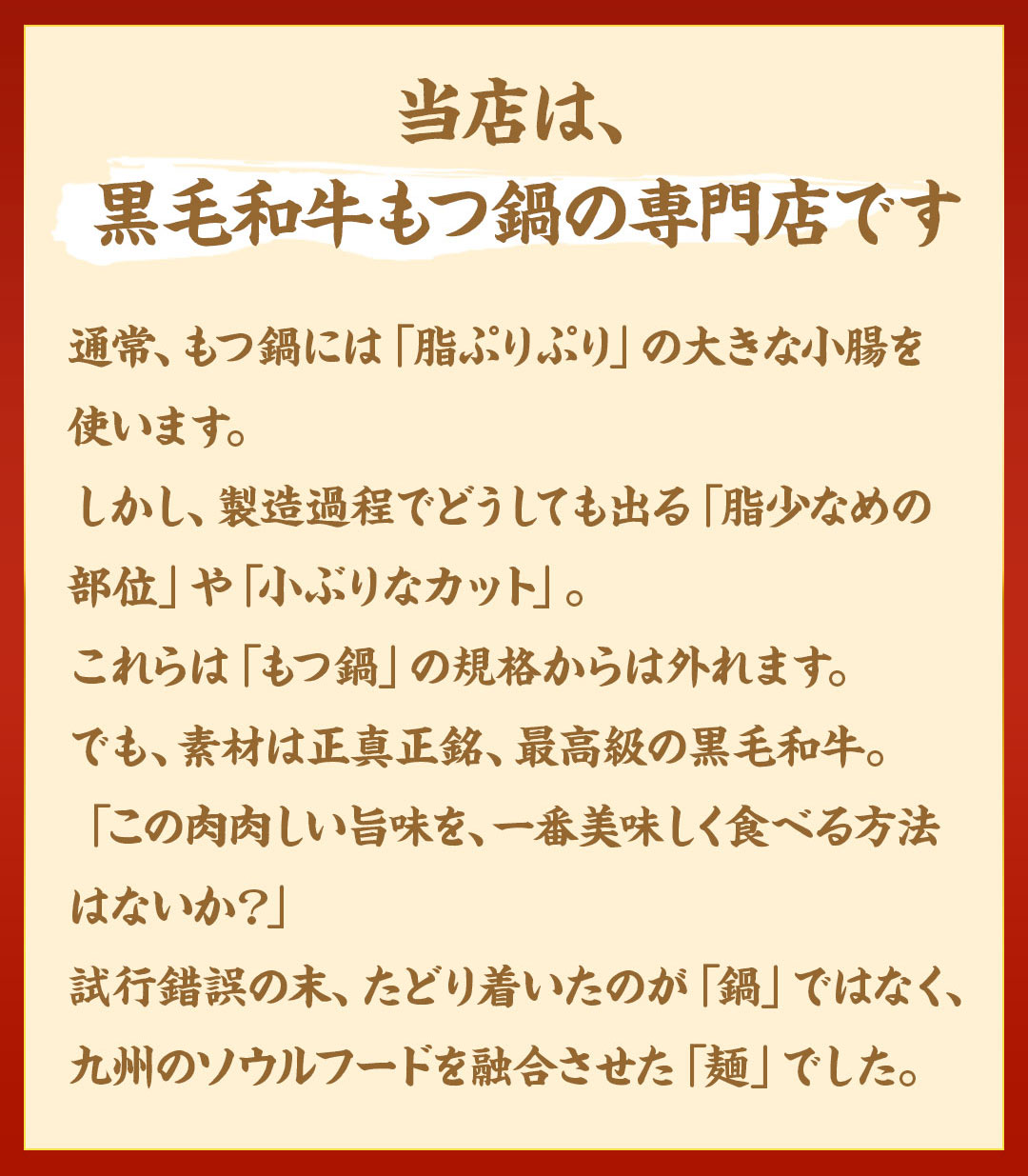 【冷凍を選択されたお客様へ】当店のもつ鍋は作り置きせず、出荷当日に真心こめてお作りしており、そのまま冷凍発送するため輸送時間が少ないと完全には凍らずにお手元に届く場合がございますが、品質に問題ございません。